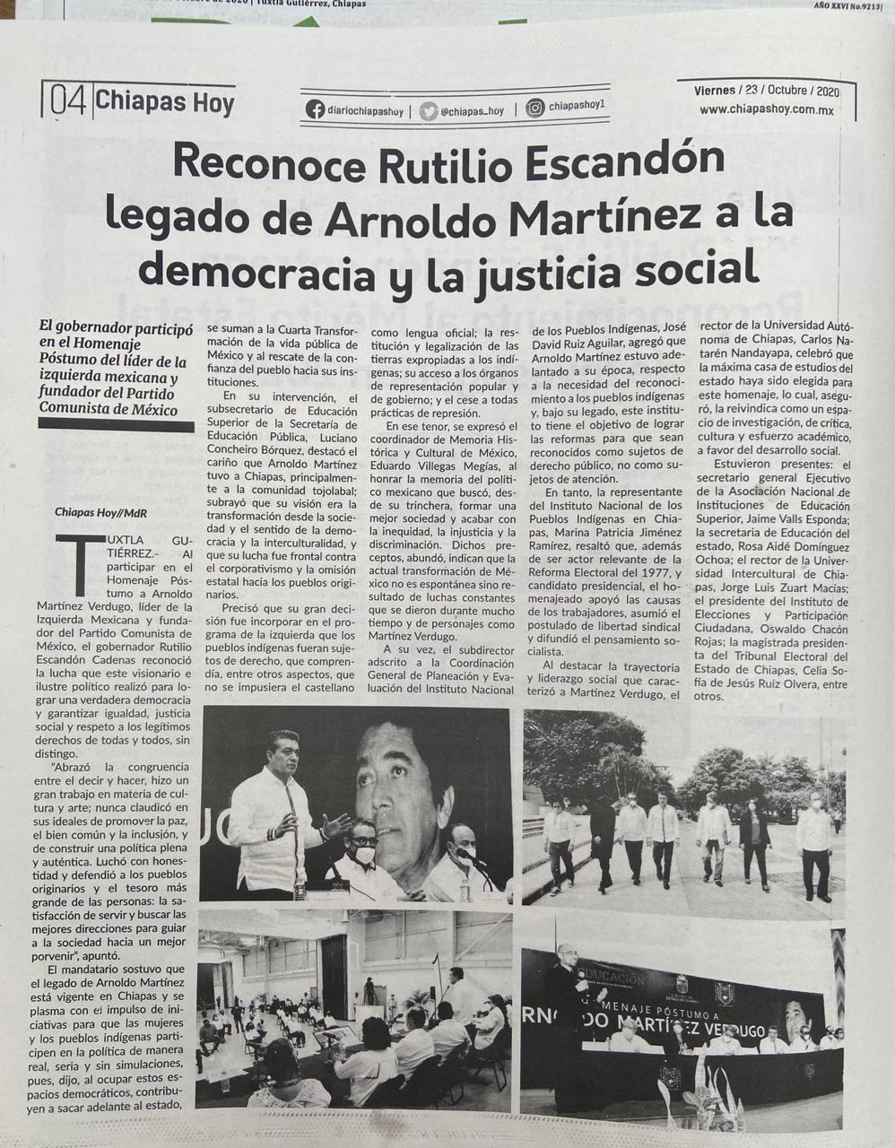 En un acto que se realizó bajo las medidas de la sana distancia en Palacio de Gobierno y que fue encabezado por el Gobernador Rutilio Escandón Cadenas, se entregó la presea y el pergamino, que reconoce el trabajo y su trayectoria.